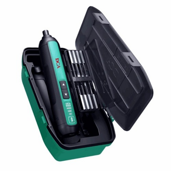 მახასიათებლები: ბრენდი: DCAმოდელი: ADPL04-5Eბატარეის ტევადობა: 4V/2.0Ahდამაგრების მოცულობა: 6.35 მმ ექვსკუთხა თავიმაქსიმალური ბრუნვის მომენტი: 5 NMხრახნის მაქსიმალური დიამეტრი: 5 მმსიჩქარე დატვირთვის გარეშე: 300 rpmბრუნვ...