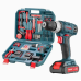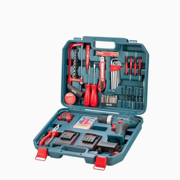 მოყვება: 2 ცალი 1.5Ah/12V ბატარეა, 1 სწრაფი დამტენი, კომბინირებული პლიერი, საზომი ლენტი, სასხლეტი ხერხი, დანა, 10 ცალი დანა, იზოლირებული ლენტი, ტესტის კალამი, ხრახნიანი PH5.8x100, ხრახნიანი SL5.8x100, პარტია:-2.5,2.5,-3,3, თექვსმეტობითი გასაღები:1.5,2,2.5,3,4,5,5.5,6,1/4" სოკეტი:5მმ,6მმ,7მმ,8მმ,9მმ,10მმ,11მმ 12 მმ, 13 მმ, ბიტი 50 მმ, CRV: PH1, PH2, PH3, PZ1, PZ2, T20, T25, SL4, SL6, ბიტი ADA, საბურღი ბიტები: ქვისა ბურღი5, ქვისა ბურღი6, HSS გრეხილი საბურღი5, HSS ბრტყელი საბურღი6, ხის ბრტყელი საბურღი 12, 10 ცალი 5 მმ. 6 მმ გაფართოების მილი, 5x30 ხრახნი 10 ცალი, 4x25 ხრახნი 10 ცალი, 3.5x20 ხრახნი 10 ცალი